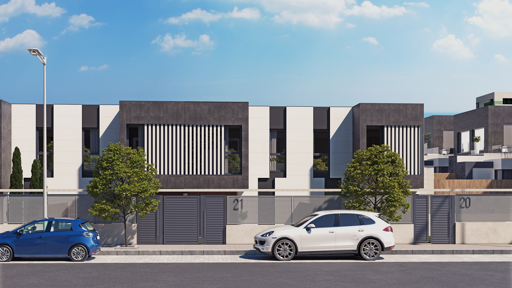 Promoción de vivienda libre, desarrollada junto a NEINOR HOMES, en la calle Ferenc Puskas, en el Cañaveral, Madrid. La urbanización consta de 38 viviendas unifamiliares de 4 dormitorios con 85 plazas de aparcamiento y trasteros.